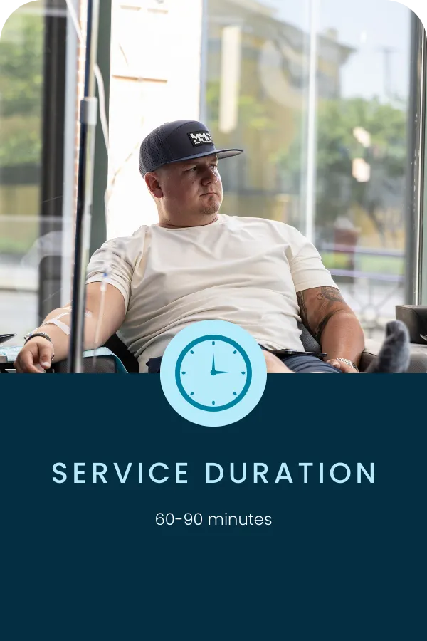 IV vitamin therapy or IV hydration therapy is a relaxing, 60-90 minute experience that may leave you feeling energized, hydrated and ready to take on your next challenge.