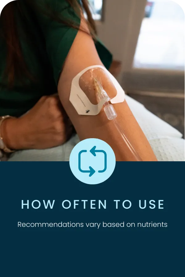 Once your forms are complete, a Registered Nurse will take your vital signs, followed by a brief Telemedicine consultation with a medical provider. During this visit, we’ll discuss your health background, unique wellness goals and how IV Vitamin Therapy or a customized IV Therapy can support your needs. If you’re 65 or older, lab tests will be required before proceeding to ensure optimal safety.