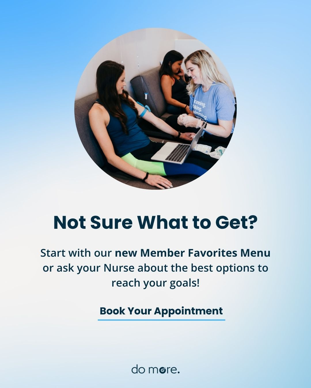If you’re interested in enhancing your metabolism, energy and cellular health, ask about an NAD+ or Niagen IV Add On before your IV Therapy appointment.